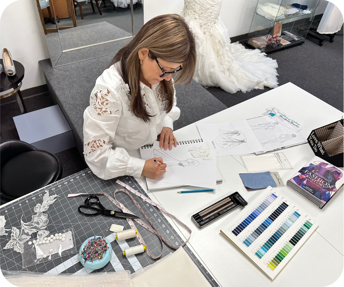My beginnings were designing and making dresses for my friends and family. With more than 20 years of experience, I currently have my store in the Town of Hudson, NH, where I design, create, make, alter wedding dresses and offer personalized service.I am deeply grateful to Ms. Barbara Antonacci, who placed her trust in my knowledge; she provided me with support and guidance, which have been fundamental in my career.