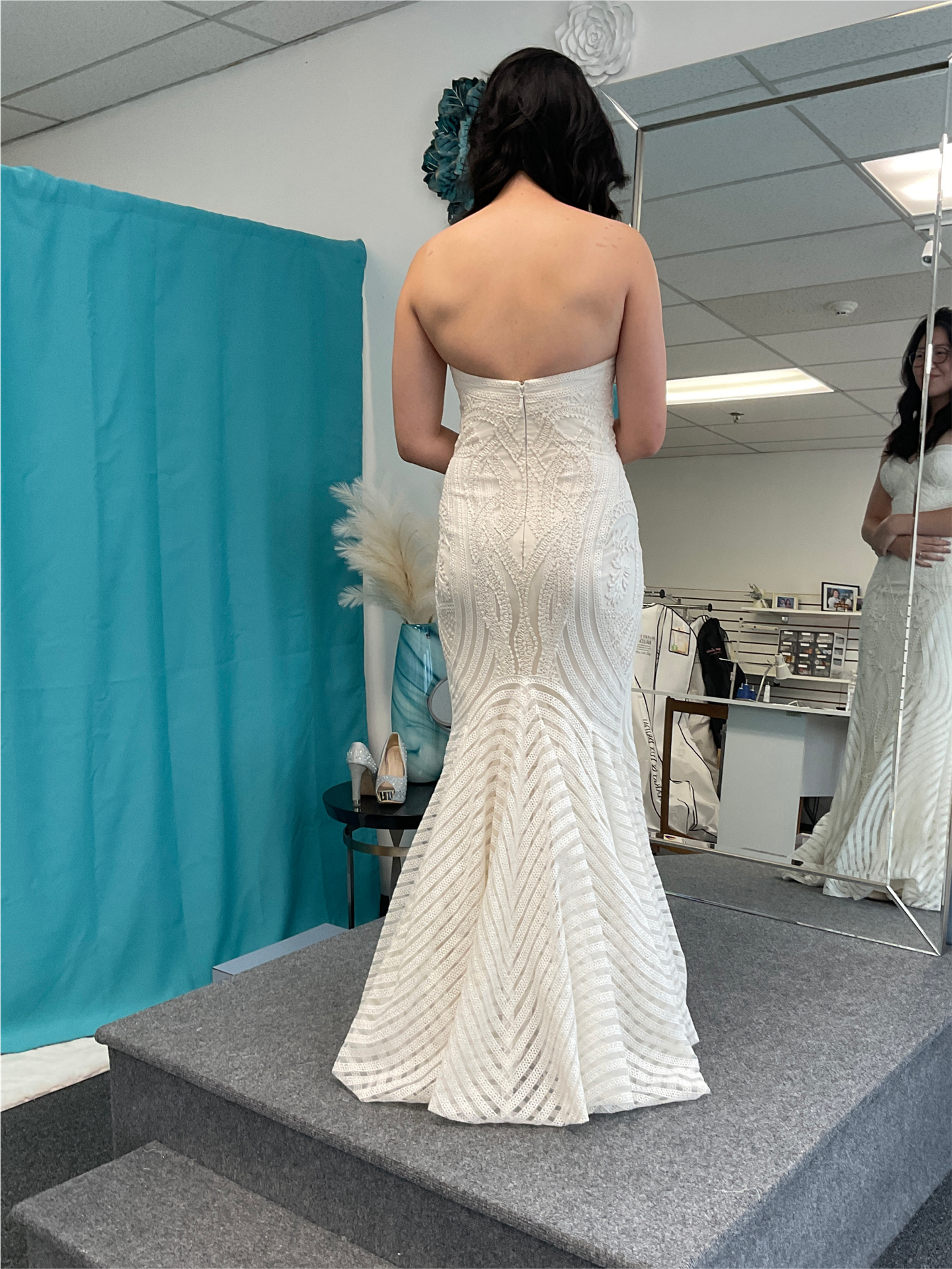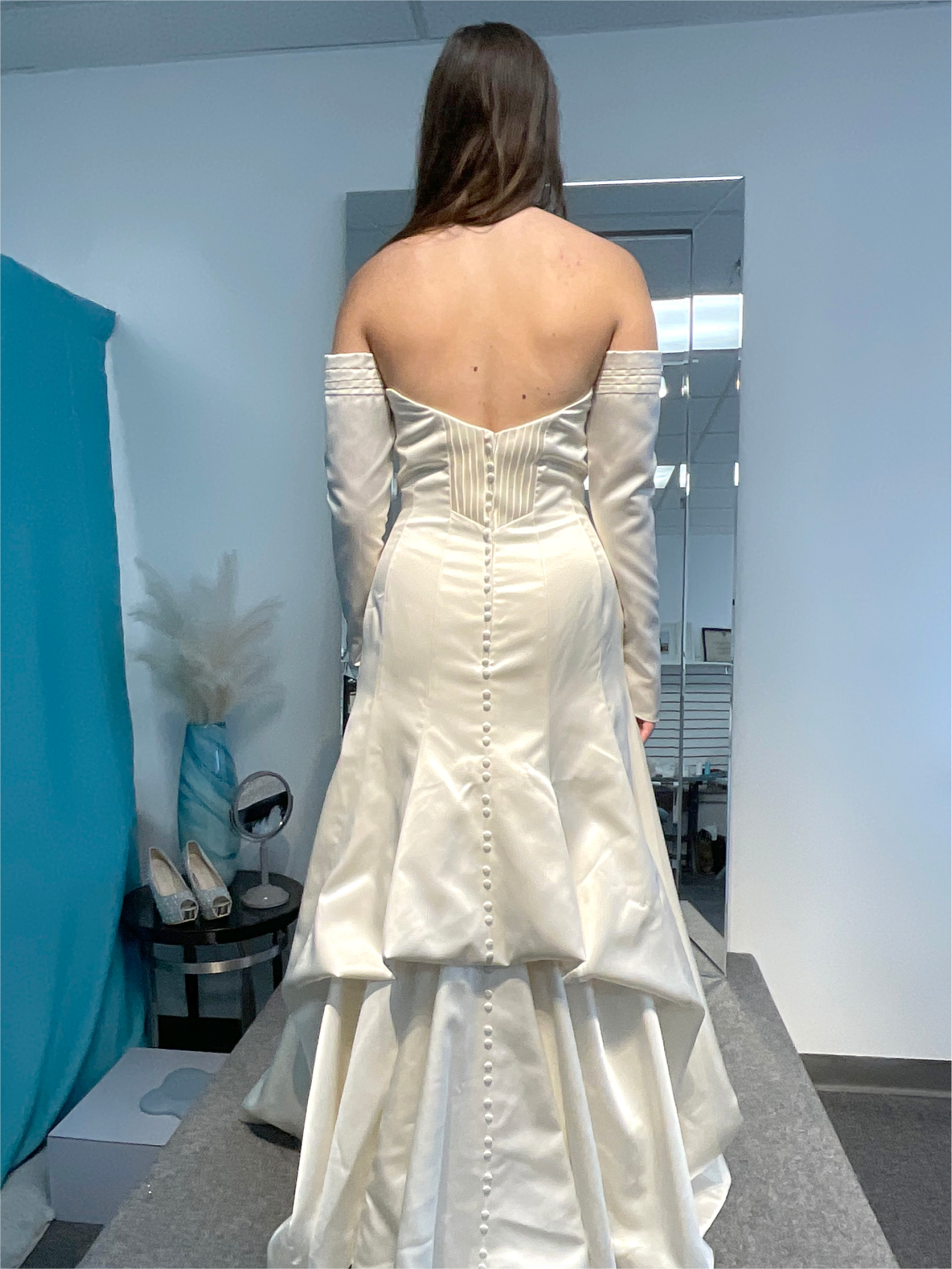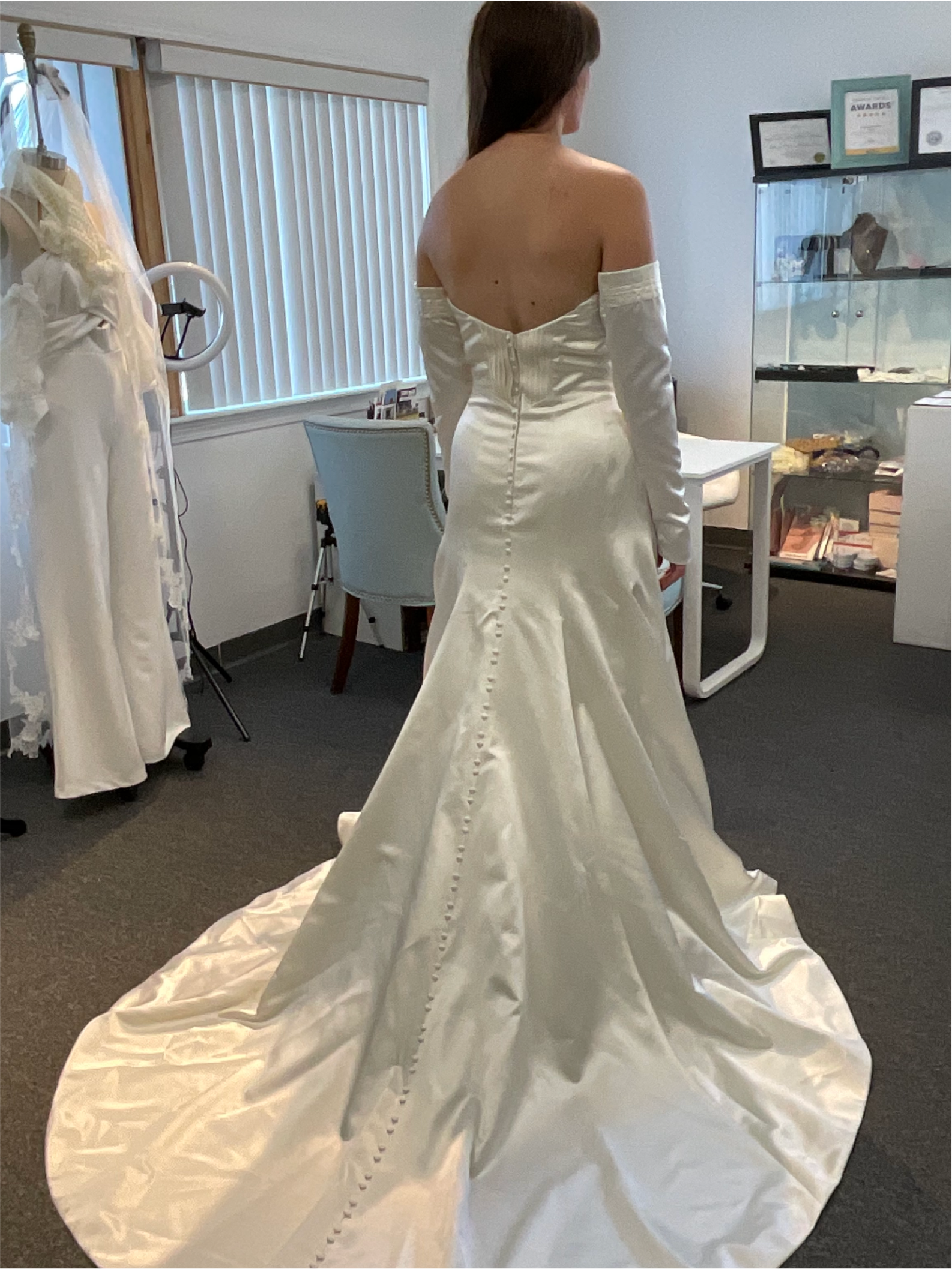 Creating a long sleeves and veil from scratch and adding it to a into spaghetti straps wedding dress